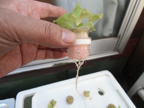 ペットボトルの口の部分(名前がわからない)に植えたレタス