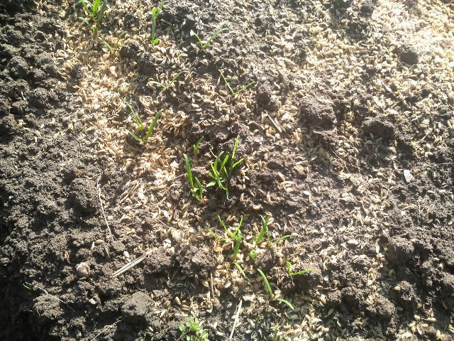 マルチングに種を蒔くときにこぼれたのだろう