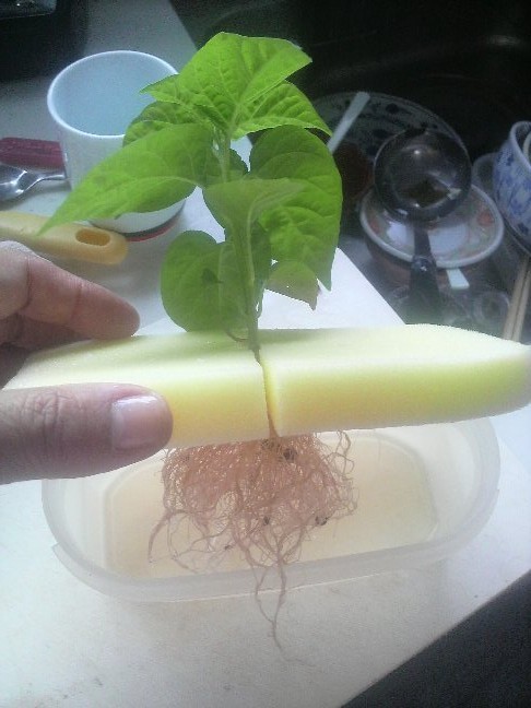 ふと水耕栽培でもしようかと発泡スチロールに入れた おーーー 花芽が付いたではないか・・・